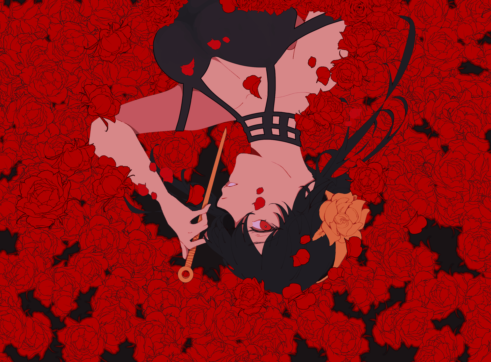 This captivating print depicts Yor (Spy x Family) in her assassin clothes in a sea of flowers.
